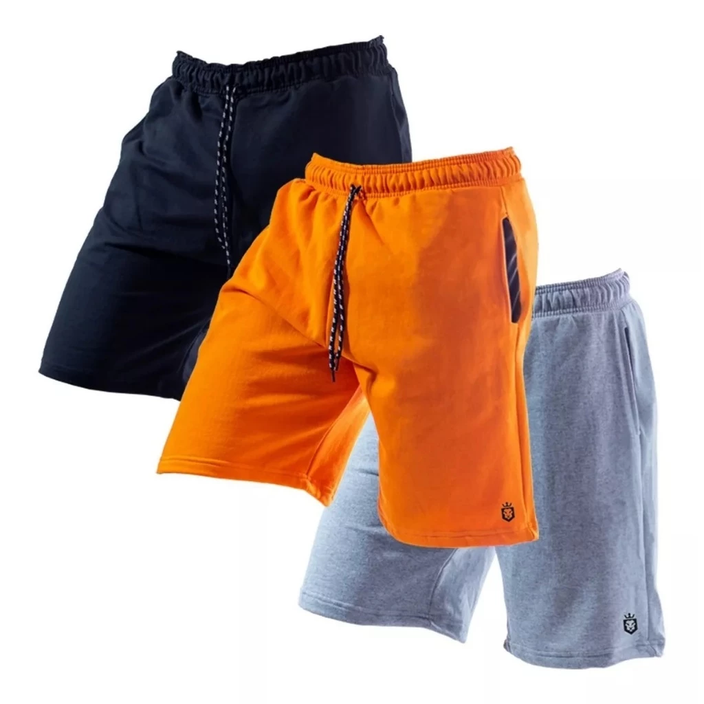 Kit 3 Bermudas De Moletom Academia Short Masculino De Treino