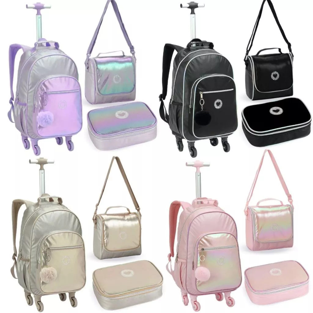 Kit Escolar Infantil Mochila Just Lancheira Bordada Meninas