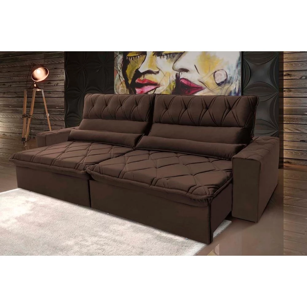 Sofá Retrátil Reclinável França 3,00m Suede Velut Marrom Molas no Assento - King House