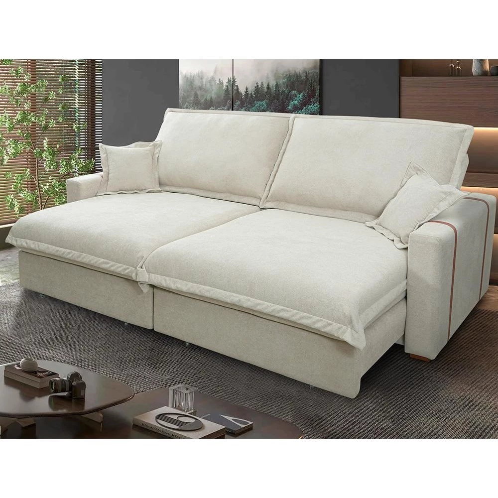 Sofá Retrátil Reclinável Nairobi 2,18m Bege Bouclê
